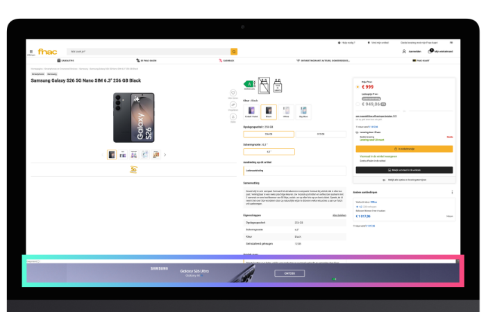 Grâce à l’unification d’une technologie e‑retail unifiée sur l’ensemble des sites e‑commerce Fnac en France, Espagne, Portugal, Belgique et Suisse ; dès le 26 février 2026, Samsung a déployé une campagne digitale de façon simultanée en Belgique sur Fnac.be jusqu’au 29 mars, en Espagne sur Fnac.es jusqu’au 27 mars ; ainsi qu’en France sur Fnac.com et Darty.com jusqu’au 31 mars.